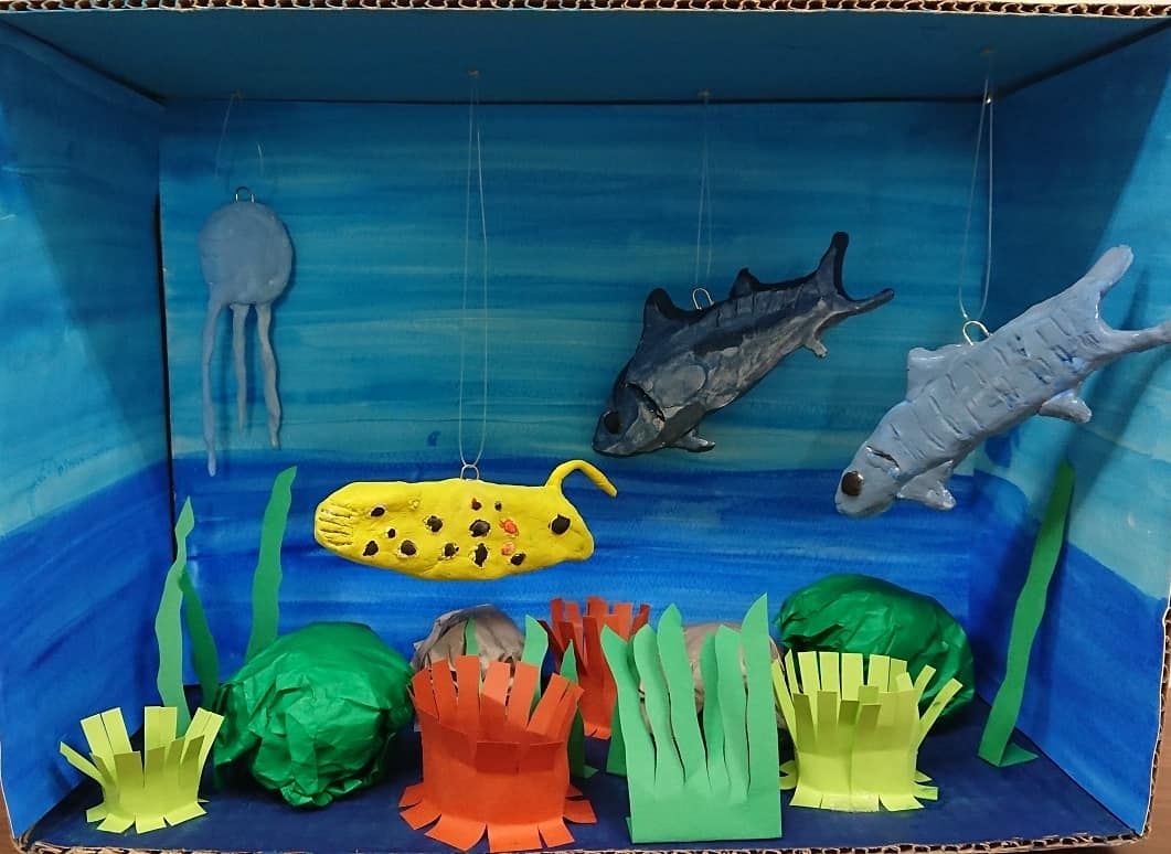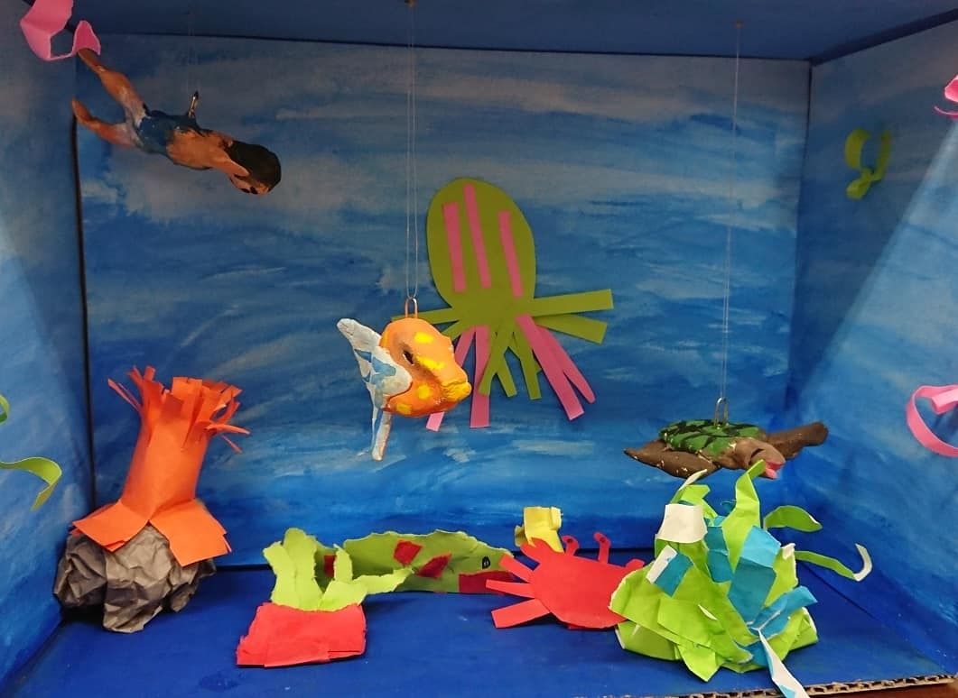 2019/08/20 海の工作 夏休み着々と海にもぐってみたい…海の工作時間をかけて少しずつ作っていきました。気に入ってくれた子が多く、学校に持っていってもいいですか?の質問も。もちろん!皆、それぞれ特徴があり、こだわりどころが面白い!おお~と思わずうなる話が聞けるのも楽しい!暑い夏に涼しい気持ちにはなるけれど、そもそも海はどの季節も楽しめるものです。せっかく作ったので、飾って楽しんでも良いし、魚を動かして遊んでも良いし、入れ替えしたり足したりしても良いですよね! 「作品紹介」カテゴリの最新記事 < 前の記事次の記事 > コメント コメントフォーム 名前 コメント 評価する リセット リセット 顔 星 投稿する 情報を記憶